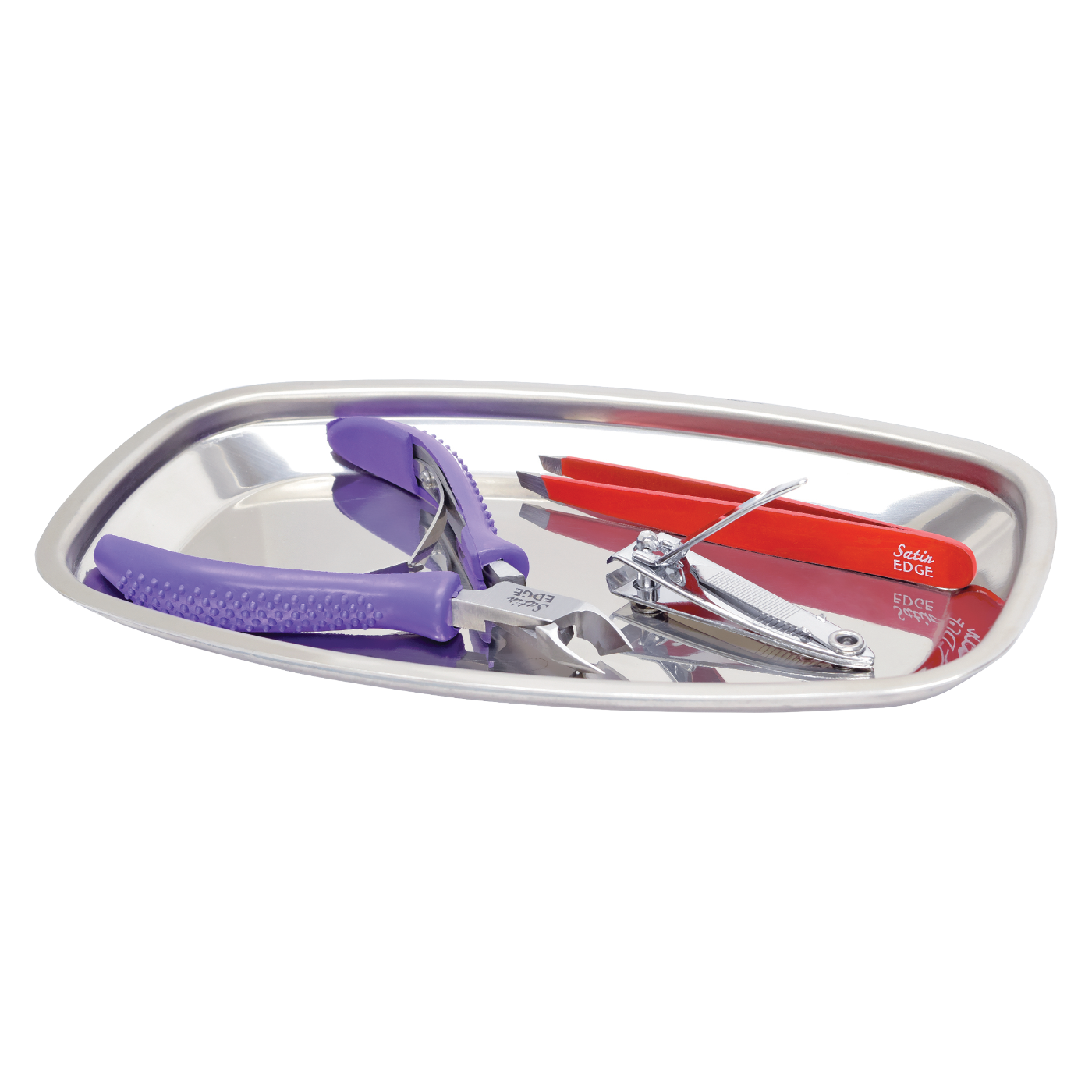 Description: Sturdy, stainless steel tray is great for storing and organizing salon tools and supplies.