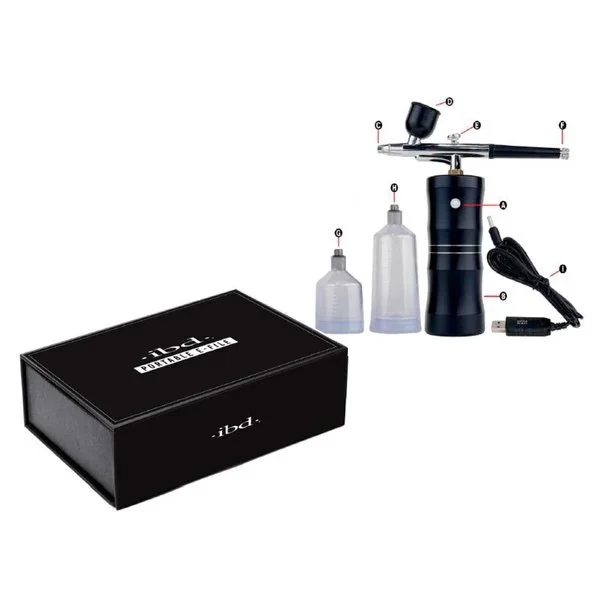The IBD Airbrush Machine with Compressor is a rechargeable, cordless device with a USB cable for easy use. Compatible with gel and lacquer, it’s ideal for creative nail designs.