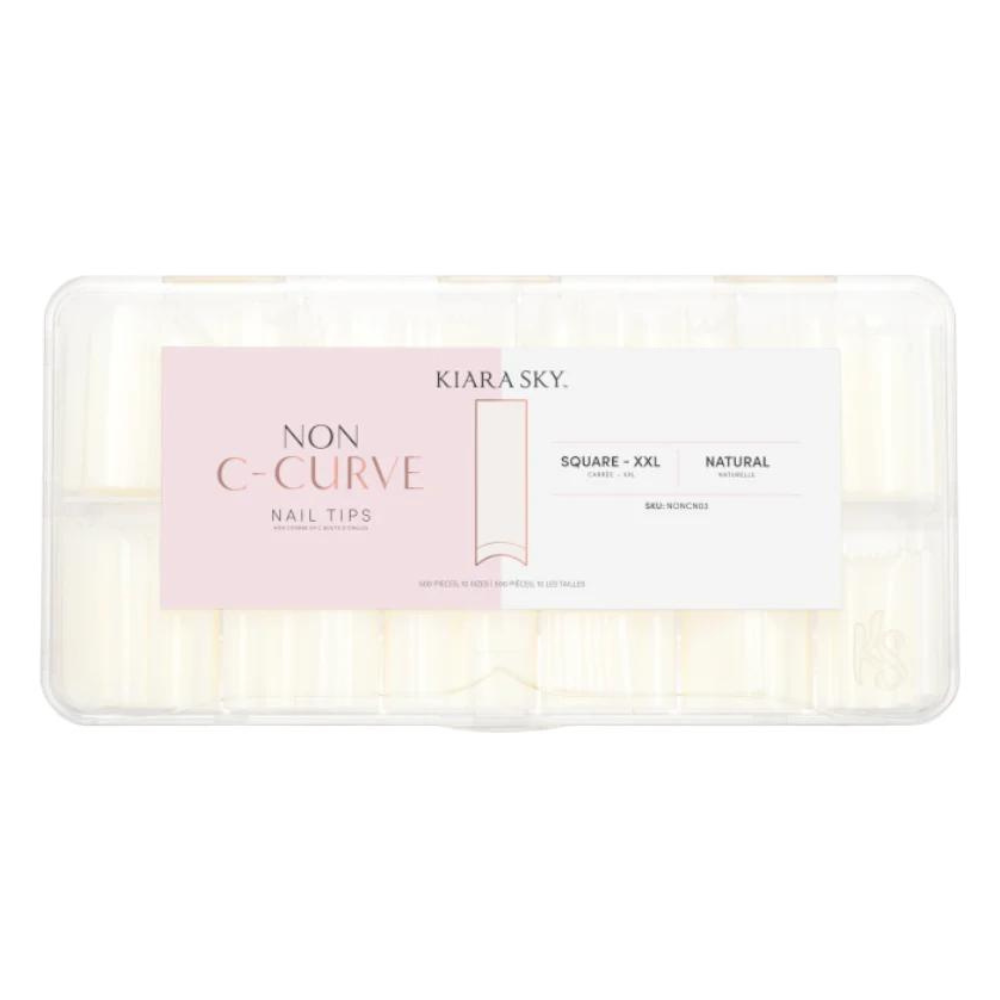 "Unlike traditional c-curve tips, Kiara Sky's Non C-Curve Tips have a lower arch, making them perfect for natural shapes and flatter nail beds without adding unnecessary bulk. Pre-Etched & Pre-Shaped, these Double XL half-cover tips are ideal for timesaving acrylic, dip powder and gel applications. These tips have been designed to be incredibly strong while retaining their flexibility making the shaping process a breeze."